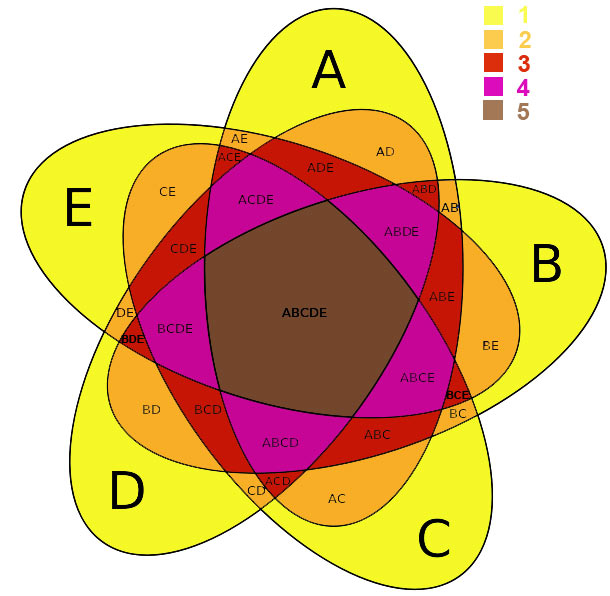 ข้อมูลที่มีมาให้คือ ข้อมูลแยก A B C D E ของแต่ละอัน และข้อมูลที่หาได้เพิ่มคือข้อมูล Union ของแต่ละอัน ซึ่งสามารถหาได้ครับทุกอัน