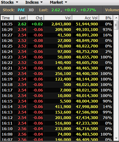 ตั้งขาย PAE ไว้ที่ 2.60 เมื่อเวลา 16.16 จากนั้นราคาจะวิ่งอยู่ที่ 2.52-2.54 จึงถึงตลาดปิด ราคาปิดอยู่ที่ 2.62 แต่ทำไมกลับมาดูรายงานการขายบอกว่าขายได้ที่ 2.60 ไม่เข้าใจเลย 2.60 นี่ขายได้ตอนไหนเหรอ