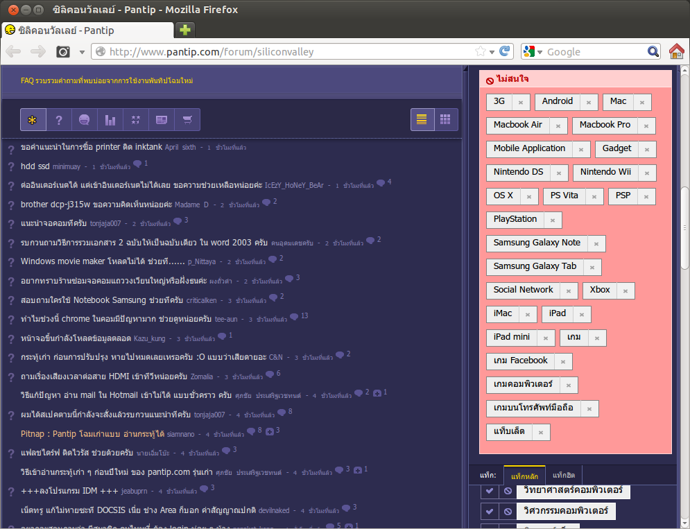 จากปัญหาการแสดงผลรายชื่อกระทู้ในเว็บพันทิปใหม่ ที่ทำให้หลายคนตาลาย ผมจึงทดลองทำ CSS ง่ายๆ เพื่อปรับแต่งหน้าจอครับ