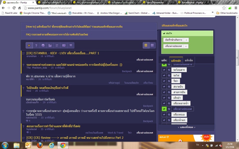 เช่นห้อง Blueplanet ถ้าต้องการให้แสดงกระทู้เฉพาะ tag บันทึกนักเดินทาง และ ท่องเที่ยวต่างประเทศ ตอนนี้เวลาเลือก จะแสดงกระทู้ทั้งหมด แต่กระทู้ที่มี tag ที่เลือกจะแสดงเป็นสีส้ม แต่ก็ยังเห็นกระทู้อื่นอยู่