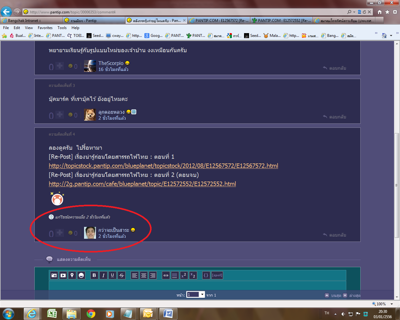 ผมพึ่งแสดงความคิดเห็นลงไปใน คห.4 ไม่ถึง 1 นาที แต่เว็บกลับแสดงว่าเมือ 2 ชั่วโมงที่แล้ว