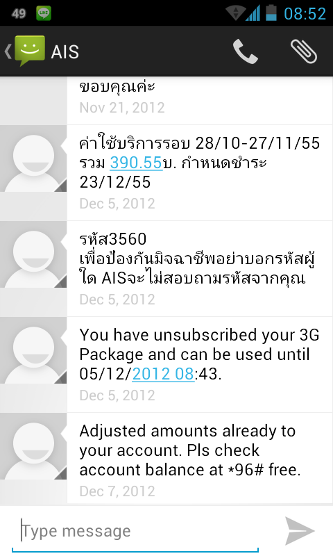 ไม่มีบิลชำระค่าบริการ แต่มีSMS จาก AIS มาทวงเงิน