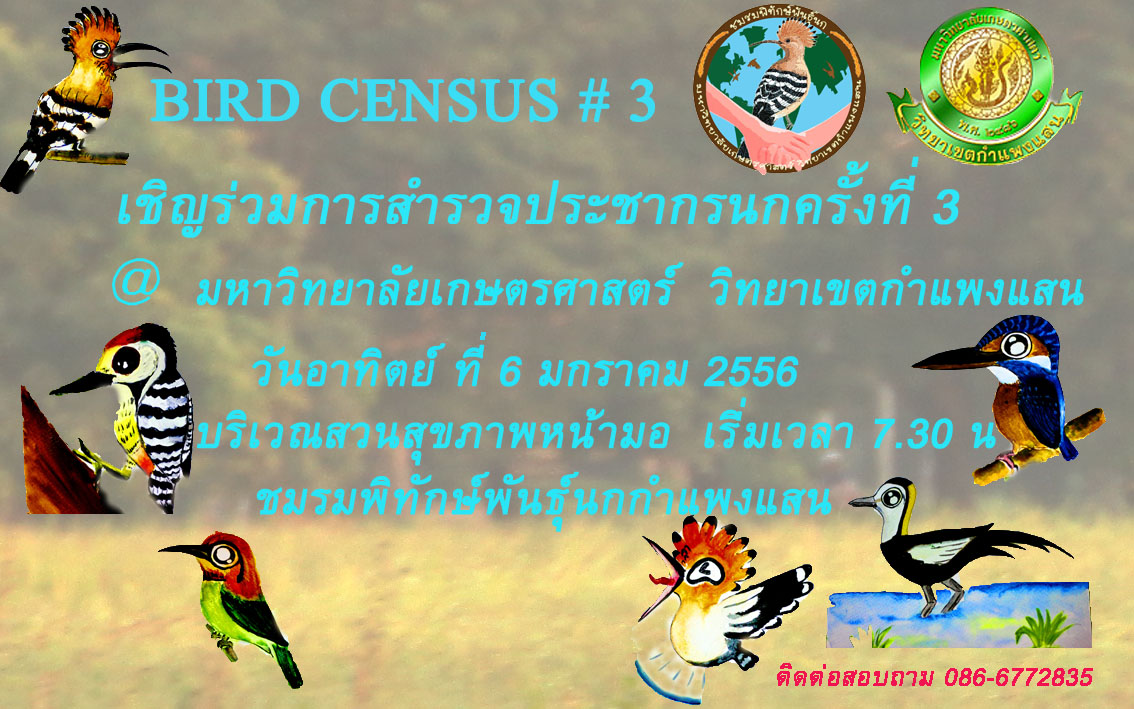 ชมรมพิทักษ์พันธุ์นก ขอเชิญทุกท่านเข้าร่วมกิจกรรมนับนก ณ มหาวิทยาลัยเกษตรศาสตร์ วิทยาเขตกำแพงแสน