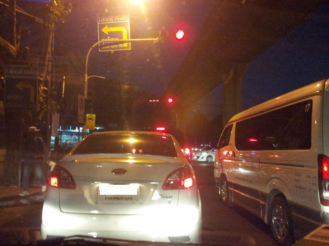 จะเลี้ยวซ้ายเข้าปาดหน้ารถที่รอเลี้ยวซ้าย ตรงหน้าปากซอยที่ใช้เป็นทางลัด