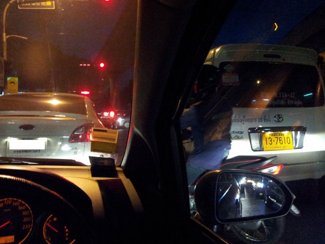 และสังเกตุได้ว่า รถที่ไม่เคยเข้าคิวในเลนซ้ายเลย ก็คือ บรรดารถตู้รับส่งคน