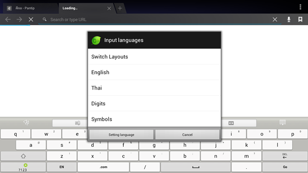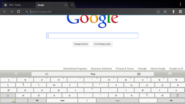 และอย่างที่เคยนำเสนอไปแล้วว่า ถึงแม้แอนดรอยด์จะรองรับการใช้งานภาษาไทย มีเมนูภาษาไทยมาให้ แต่อย่างไรก็ดี ผู้ใช้ยังจำเป็นที่จะต้องติดตั้งแอพพลิเคชั่นพิมพ์ไทยจาก Play Store เอง แต่ทั้งนี้ เพื่อความสะดวก ทาง aigoPad จึงได้ทำการติดตั้งแอพพลิเคชั่นคีย์บอร์ดที่ชื่อว่า Go Keyboard มาให้ ซึ่งผู้ใช้สามารถที่จะติดตั้งคีย์บอร์ดไทยได้ในทันที โดยไม่ต้องผ่านการดาวน์โหลดจาก Play Store อีก