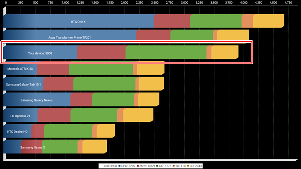 เมื่อลองทดสอบด้วยแอพพลิเคชั่น Quadrant Standard Edition จะเห็นได้ว่าคะแนนของ aigoPad M80D อยู่ในลำดับที่สาม ซึ่งก็ถือว่าทำได้ดีมาก เมื่อเทียบกับอุปกรณ์ในระดับราคาที่แพงกว่าของคู่แข่งแบบครึ่งต่อครึ่ง และถึงแม้คะแนนที่ได้จะอยู่ในระดับเดียวกันกับแบรนด์มีชื่ออื่นๆ แต่ถ้าสังเกตให้ดีจะเห็นได้ว่า อุปกรณ์ที่นำมาเปรียบเทียบแต่ละตัว เป็นตัวที่วางจำหน่ายมาประมาณปีกว่าๆ แล้วทั้งนั้น