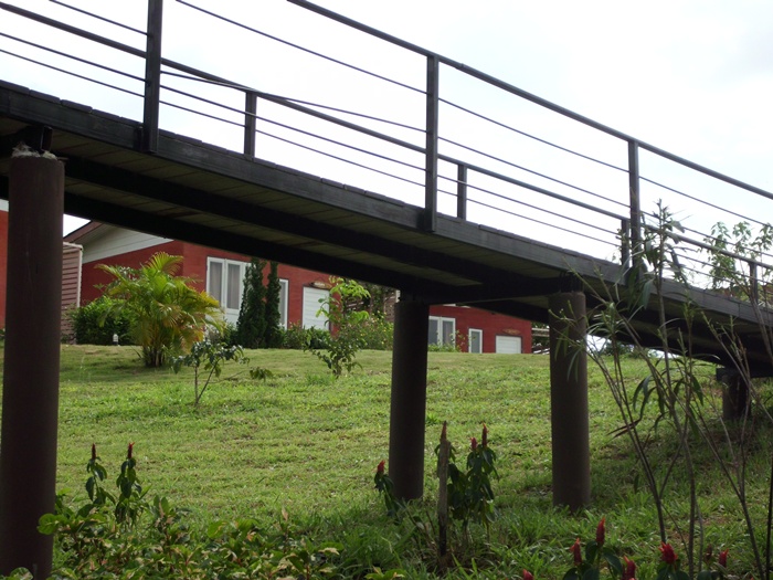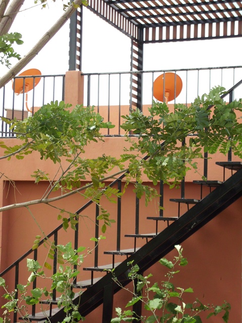 ข้างตัวตึกจะมีบันไดขึ้นไปบนดาดฟ้าและมีสะพานทางเดินไปยังล็อบบี้และที่ห้องอาหารด้วยครับ