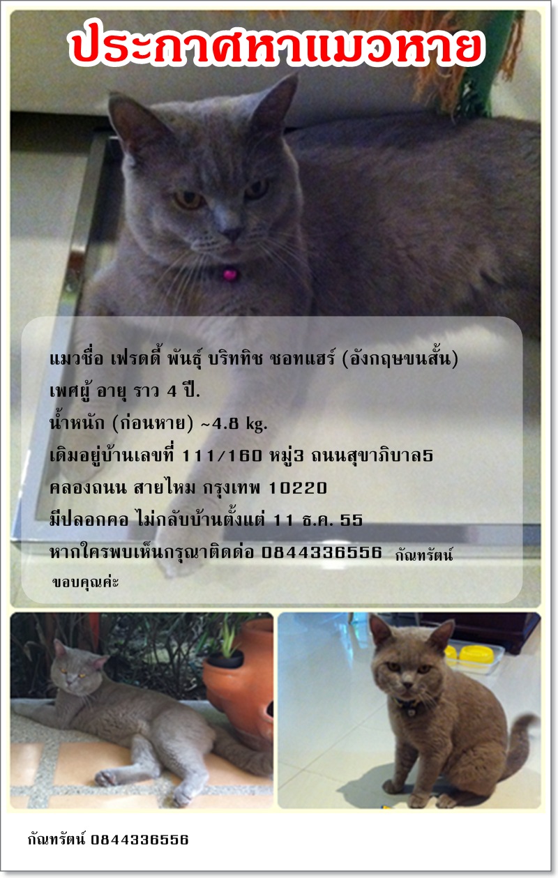 แมวชื่อ Freddy พันธุ์ British Shorthair (อังกฤษขนสั้น)
