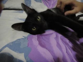 น้องดัมมี่ เพศเมีย อายุ 4 เดือนกว่าขนดำเป็นเงา แวมขาวที่หน้าอกและท้อง