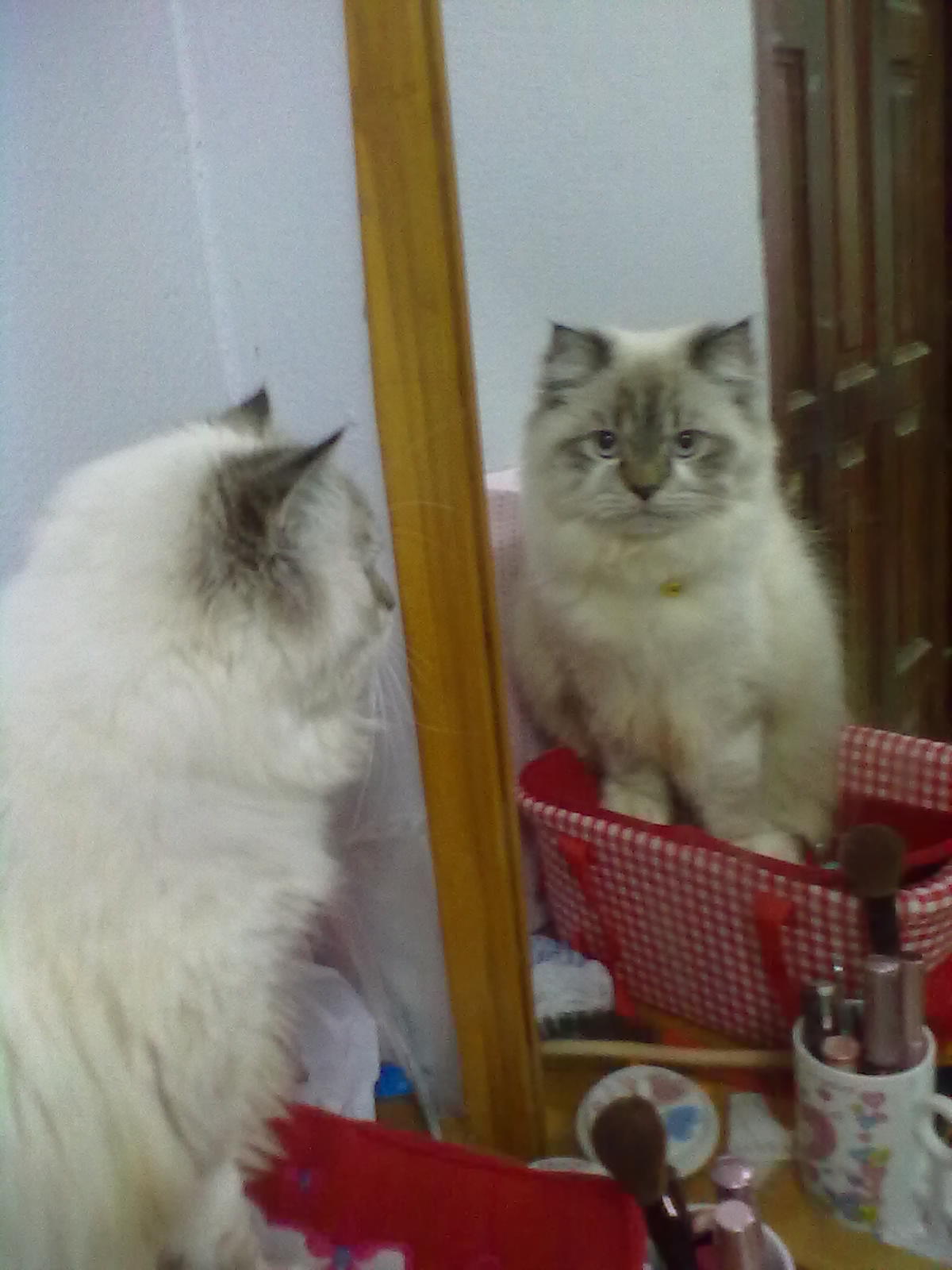 เลี้ยงน้องแมวเปอร์เชียไว้ที่หอ ๑ ตัว น้องแมวอยู่กับเรามาตั้งแต่ ๒ เดือนกว่า ๆ ไม่เคยออกไปไหน มีไปก็ไปที่ทำงานเรา ไปหาหมอบ้าง