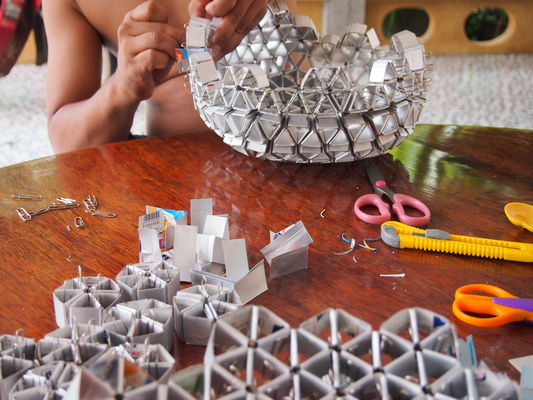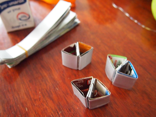 พอดีที่บ้านลูกชายทานนมกล่องวันละหลายกล่องเลยคะ ตอนแรกเก็บไว้ว่าจะเอาไปบริจาคที่เค้าทำหลังคา ทำโต๊ะ เก้าอี้คะ แต่เห็นในเวปนึงมีวิธีทำโคมไฟจากกล่องนมเลยสนใจทำดูบ้างคะ