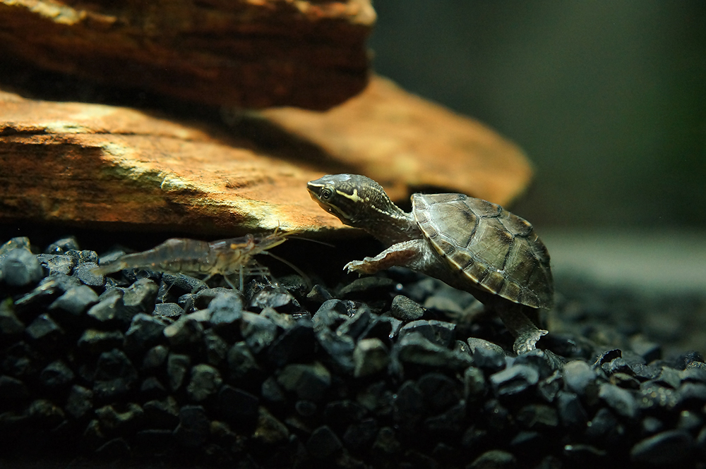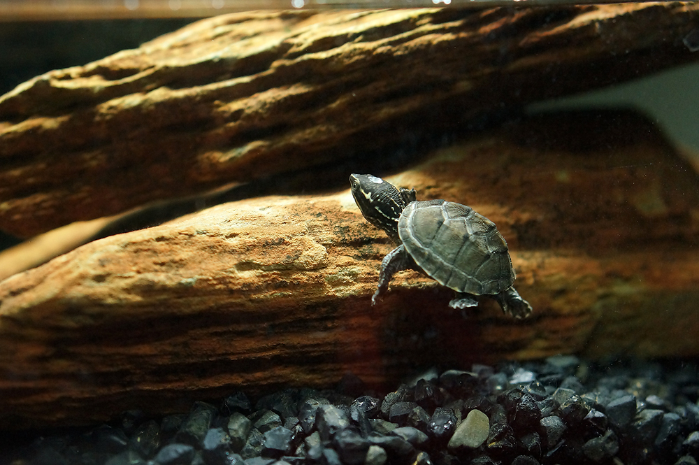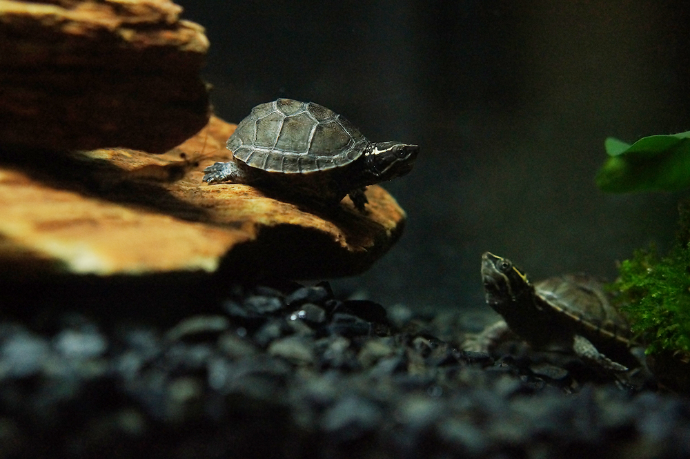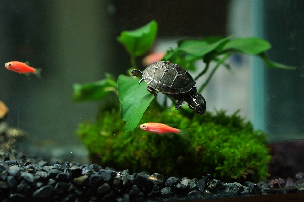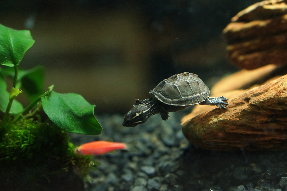 เต่าที่เลี้ยงเป็นเต่าที่เรียกว่า stink pot โตเต็มวัยตัวใหญ่ประมาณ 3-5 นิ้วครับ ผมเลี้ยงอยู่ 2 ตัว เจ้าตัวใหญ่โตประมาณ 1 นิ้ว