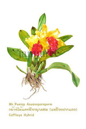 ภาพวาดวิทยาศาสตร์โบทานิคอล เจ้าดอกกล้วยไม้แคทรียา อารมณ์ โกลด์ (Arom Gold)