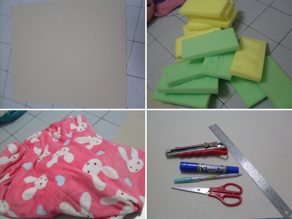 - แผ่นไม้อัด แผ่นใหญ่ (ใช้ทำฐาน) เราใช้ 1x1เมตร ( ได้ฟรีจากพี่ช่างข้างบ้าน)