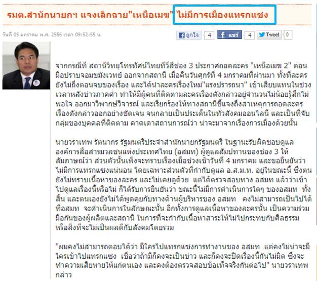 ณ วันนี้มีข้อมูลเพิ่มมากขึ้น เช่น กสทช. รับช่อง 3 ถอดเหนือเมฆ 2 เอง เหตุเห็นผิด ม.37