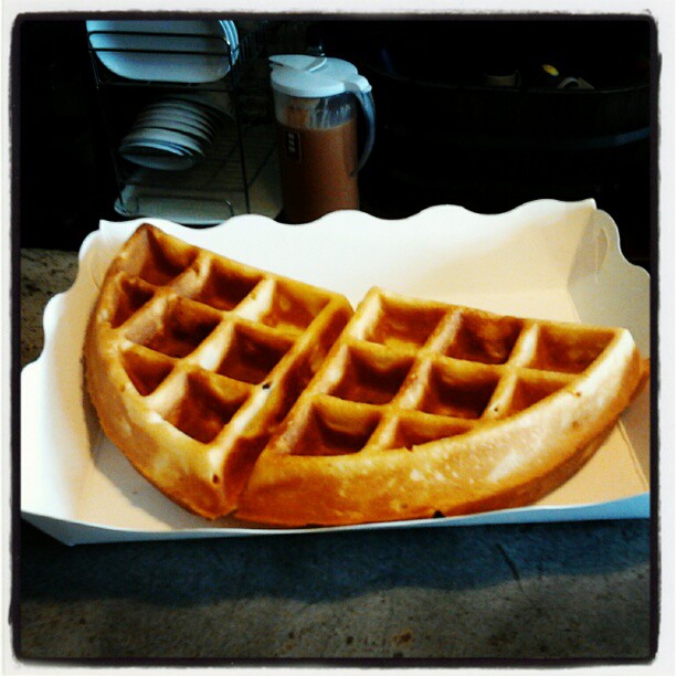 วันนี้ช่วงบ่าย ๆ แวะไปหากาแฟดื่ม และได้สั่งวาฟเฟิลมาหนึ่งชุด โดยสั่งแบบใส่น้ำผึ้ง