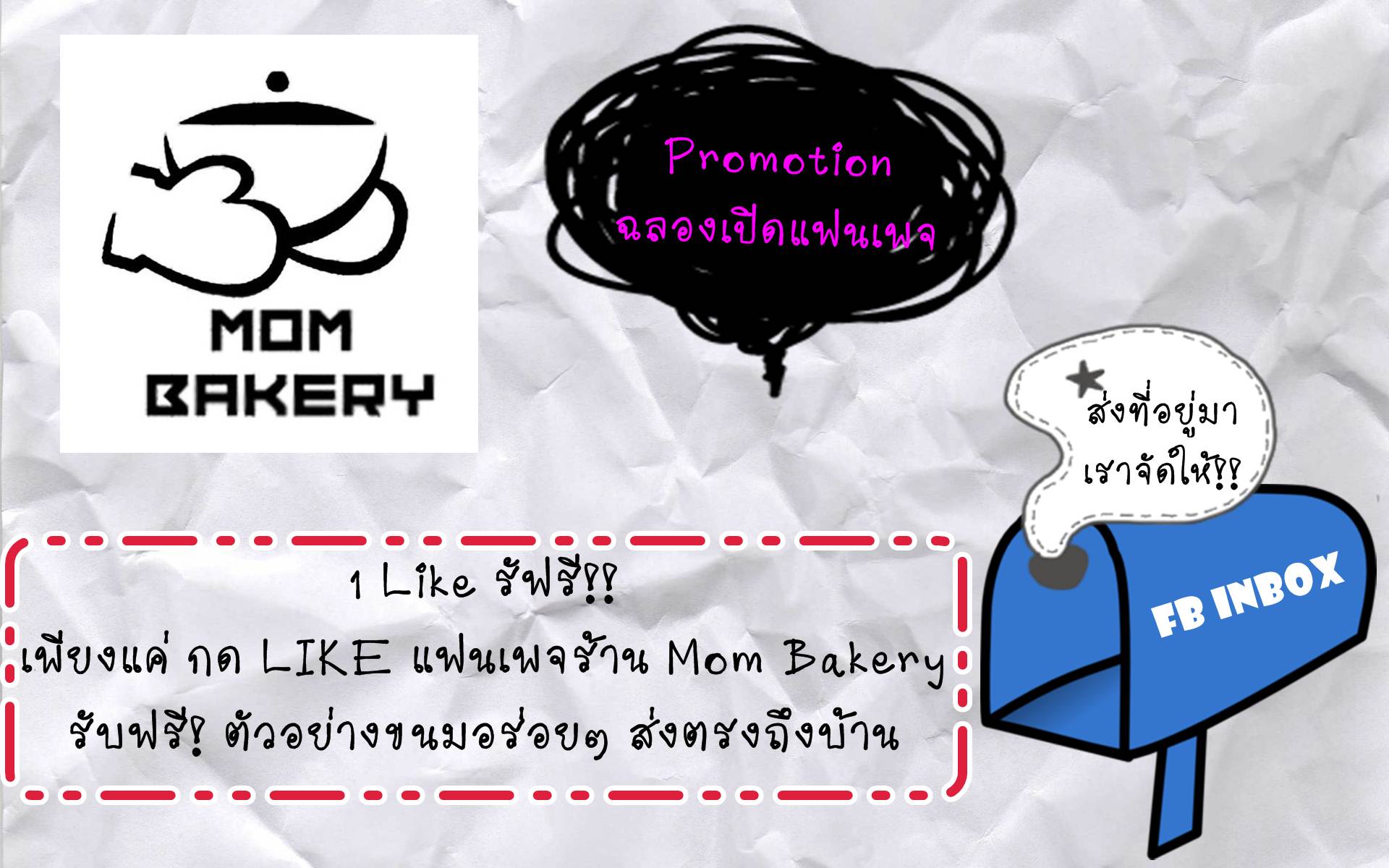 พิเศษ!!! กด Like หน้าแฟนเพจพร้อมแจ้งชื่อ-ที่อยู่ทาง Inbox รับตัวอย่างขนมไปทานฟรี!!!!