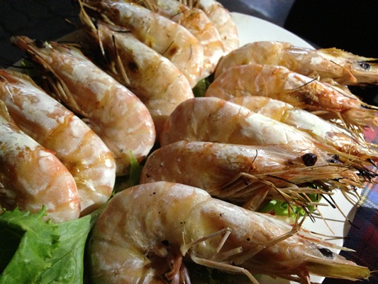 จานสุดท้าย, จานที่แปด... กุ้งแชบ๊วยย่าง ครึ่งกิโล... ราคา 450 บาท ( ฟิ๊ง!$$ ฟิ๊ง!$$ )