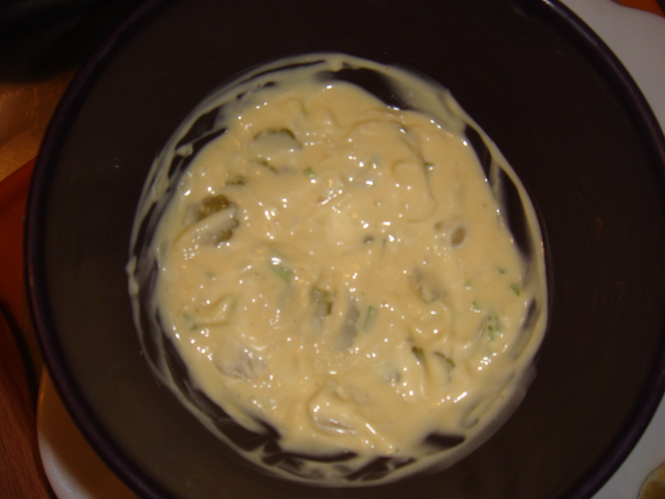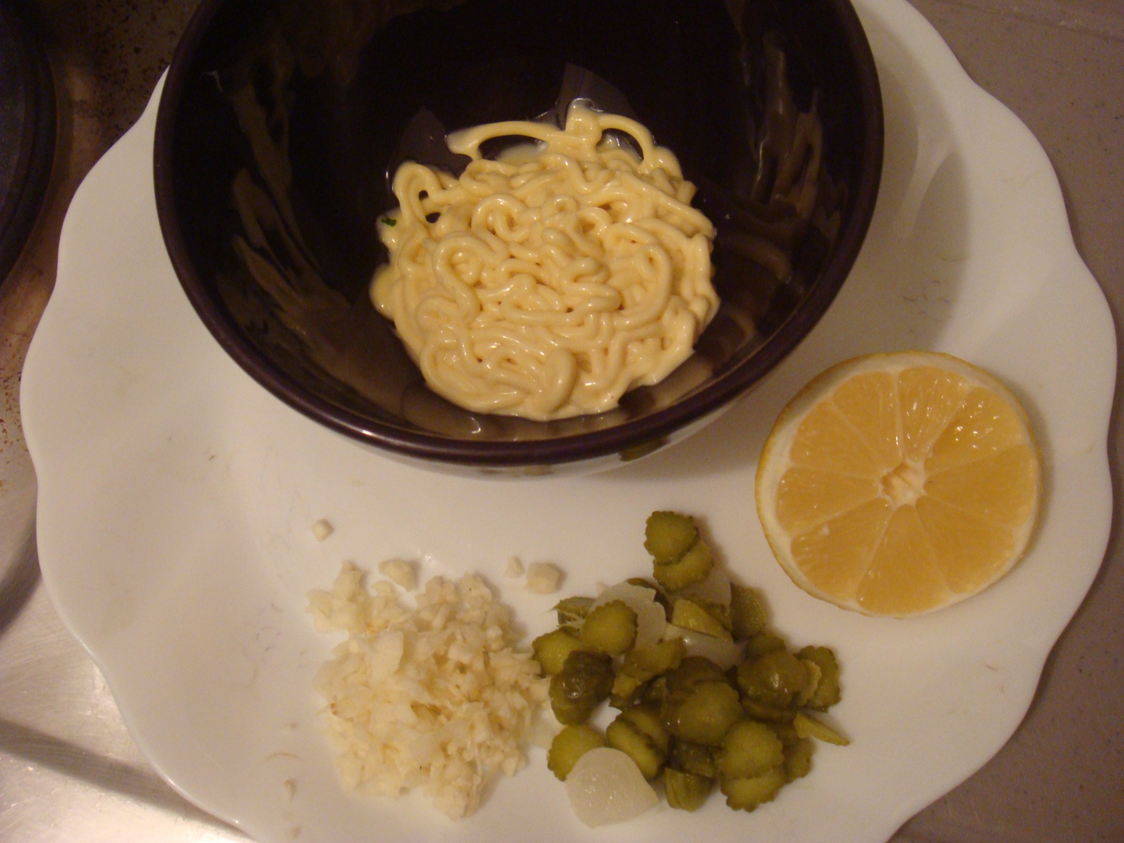 มายองเนสนี่ก็บีบเอาจากหลอดใส่ถ้วยเล็กไว้ กะๆเอาอีกละ (เป็นขดซะ55)