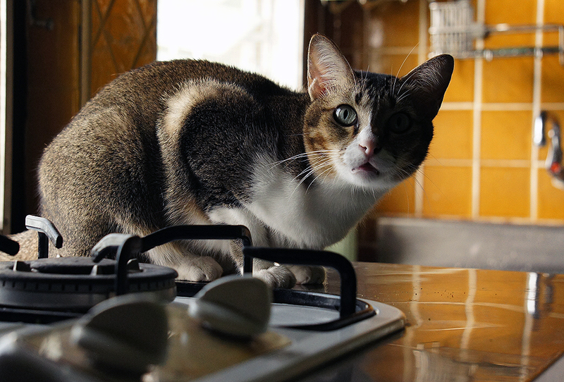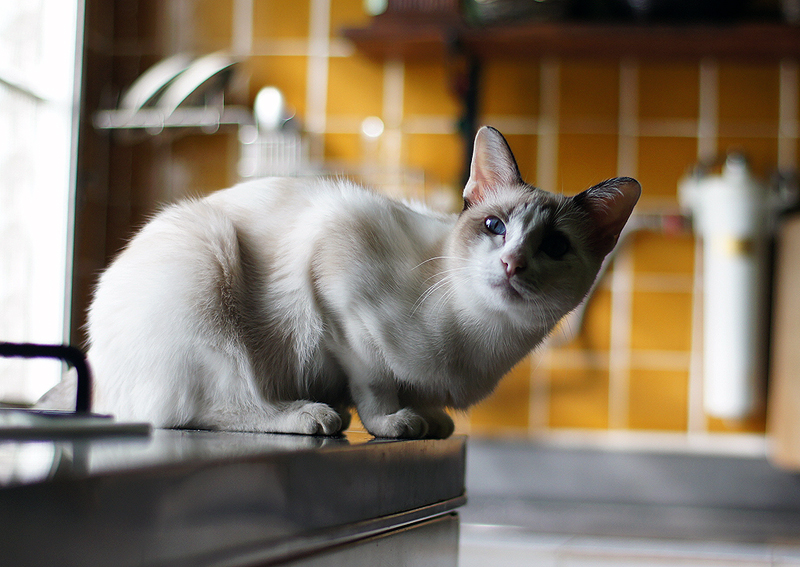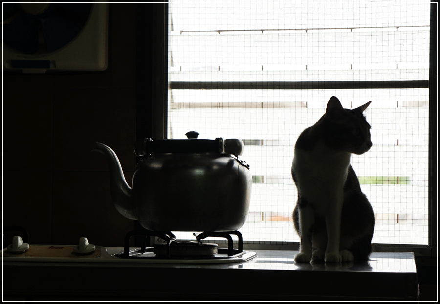 วาหวาในครัว ที่เดียวกับฝนเลย ตรงข้างหน้าต่างมักได้แสงสวย แต่แสงก็ลงด้านเดียวนะครับ อีกด้านก็มืด กลายเป็นแมวหน้ามืดสวยไปอีกแบบ