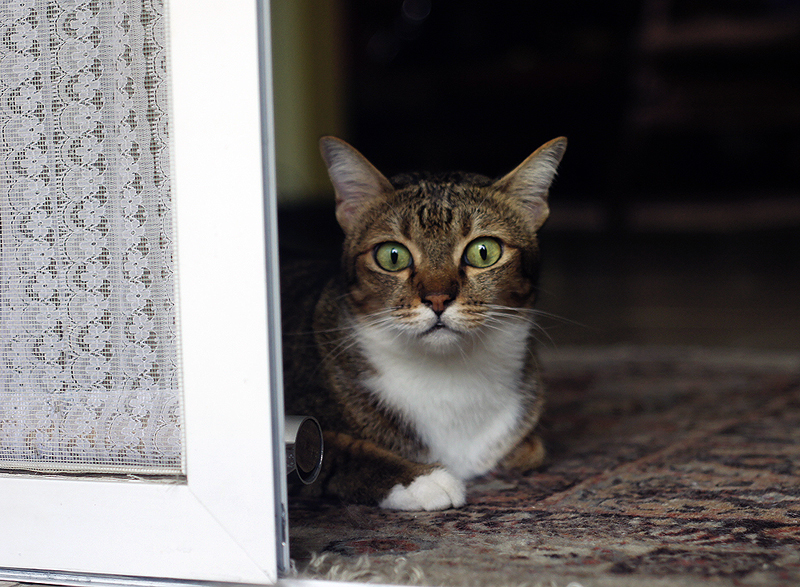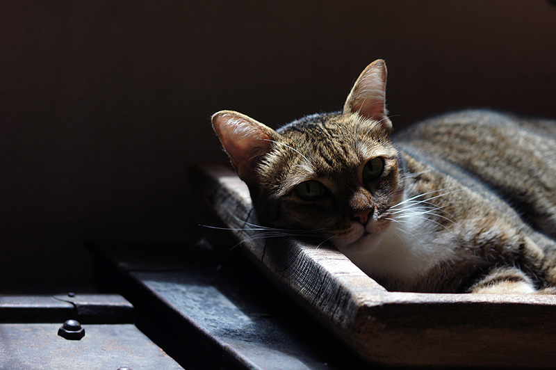 เริ่มเลยนะครับ ผมใช้กล้อง Sony Nex5 เป็นกล้อง mirrorless เปลี่ยนเลนส์ได้ แต่ใครมีกล้องคอมแพ็คก็น่าจะให้ผลไม่ต่างกันมาก เรามาเริ่มจากการถ่ายแมวในบ้านดีกว่า เดี๋ยวค่อยออกไปถ่ายข้างนอก การถ่ายแมวในบ้านก็ต้องอาศัยแสงที่ส่องเข้ามาในบ้านเป็นหลัก ช่วงเวลาที่แสงสวย น่าจะเป็นช่วงสาย ๆ สักเก้าโมงสิบโมงกำลังดีครับ เราควรสังเกตก่อนว่าแมวเขาชอบมานอนรับแสงแดดตรงไหน เขามักมีที่ประจำของเขาอยู่แล้ว เราอาจย้ายข้าวของที่รก ๆ ออกไปก่อน เพื่อให้ภาพออกมาเรียบร้อย จากนั้นก็เตรียมกล้องรอเขาเข้ามาในฉาก
