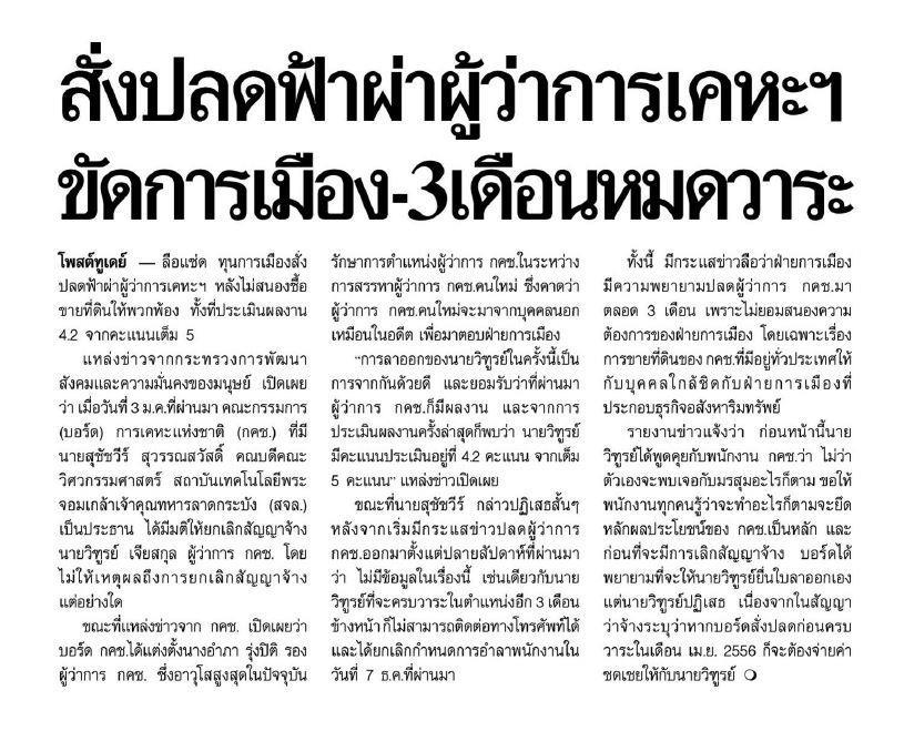 ตามข่าว อ่านแล้วก็ให้สงสัยว่าการปลดผู้บริหารสูงสุดโดยไม่มีเหตุผลนี่มันทำได้ด้วยงั้นรึนี่
