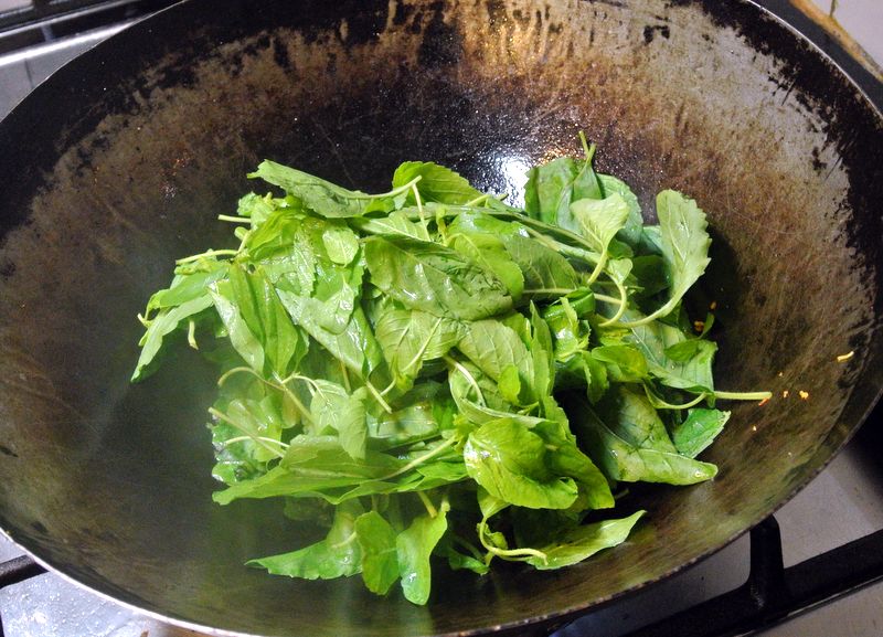เก็บใบกะเพรามาจากต้นในบ้าน