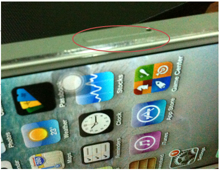 แล้วลองดูรอบเครื่อง ตรงช่องถาดใส่ซิมมันไม่เรียบเสมอกับตัว iPhone อะครับ มันนูนๆ ขึ้นมา