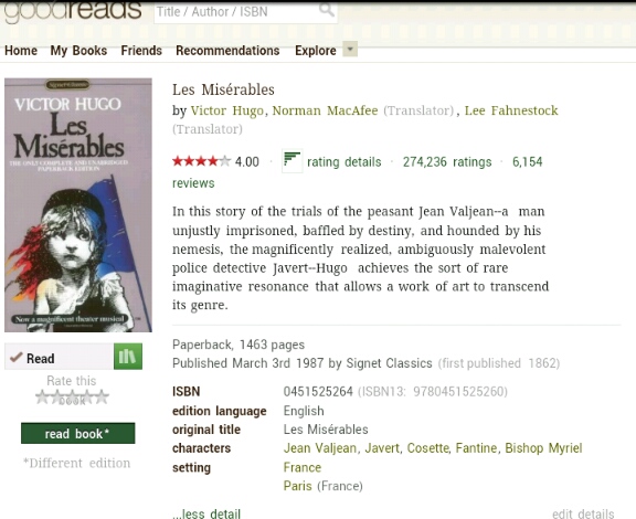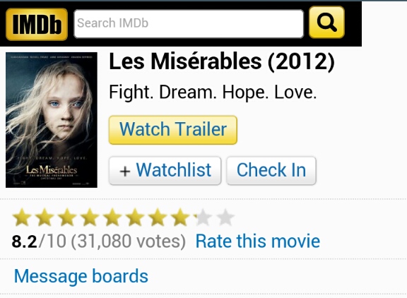 เริ่ดมาก Les miserables หลังจากฉายคะแนนขึ้นทั้งimdbและgoodread