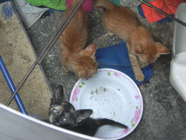 ซึ่งก่อนหน้านี้ก็มีลูกแมว 3 ตัว อยู่ที่นี่เหมือนกัน จขกท. จะรอให้เค้าเชื่องทั้ง 3 ตัว และพามาหาบ้าน