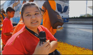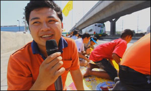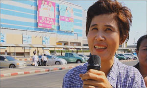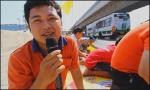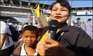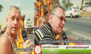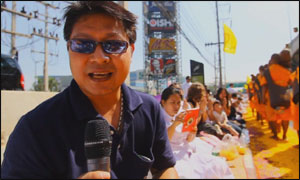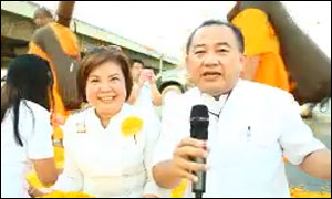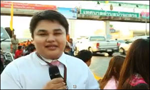 " ปลื้มค่ะ เพราะว่าตั้งแต่เช้าเราเดินจากฟิวเจอร์ไปเกียบถึงตลาดบางขันเพื่อไปต้อนรับพระทางโน้นมาแล้ว แล้วเราก็กลับมาทางนี้อีกเพื่อมาต้อนรับทางนี้อีก" http://youtu.be/3rVtu6swocY