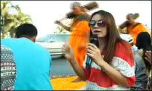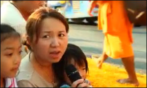 "เมื่อปีที่แล้ว เค้าก็มีต้อนรับอย่างนี้ พอรู้เราก็มาอีกคะ ประทับใจ ชอบ ชอบทำบุญ ได้บุญ มันเป็นบุญครั้งใหญ่ถึงแดดจะร้อนก็มาคะ ถ้ามีทุกปี ก็จะมาคะ" http://youtu.be/LaYEh6uXjUw