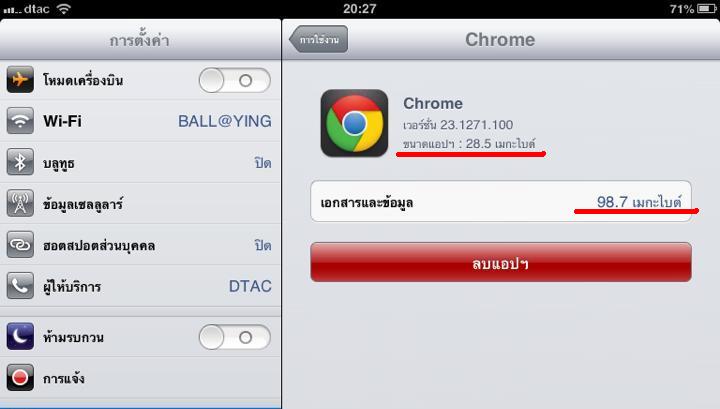 เช่น ขนาดแอป 30 mb + กับ เอกสารและข้อมูลอีก 30 mb = กลายเป็นแอปนั้นรวมเป็น 60 mb จริงๆแอปนั้นต้องขนาด 30 mb