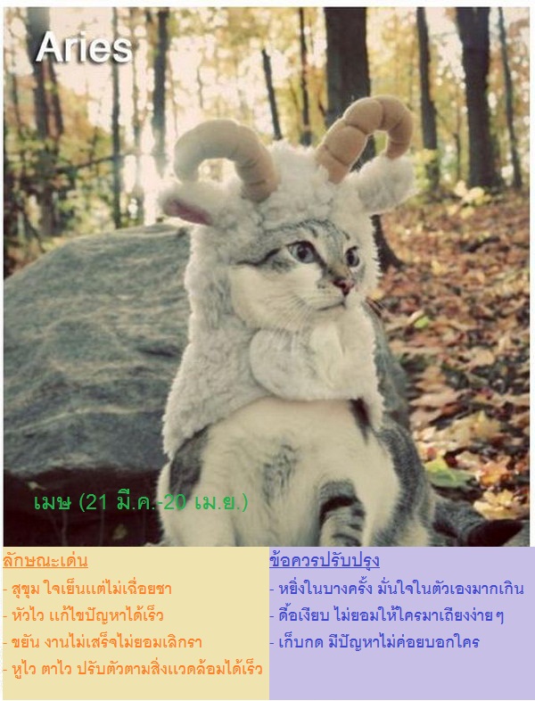 (credit ภาพประกอบน่ารักๆจาก http://www.buzzfeed.com/expresident/12-cats-of-the-zodiac)