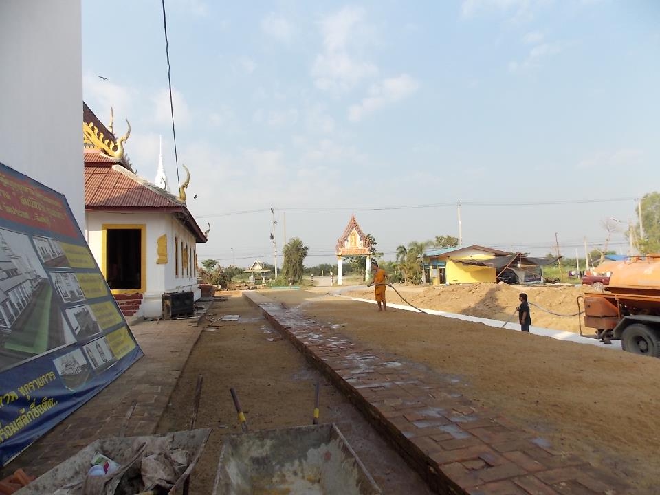 วันนี้ทางวัดประโชติฯได้ทำการฉีดน้ำบนเนินดินรอบพระวิหาร เพื่อให้ดินได้รับความชุ่มชื้นอย่างเต็มที่ ซึ่งเป็นการเตรียมดินก่อนการปลูกหญ้า