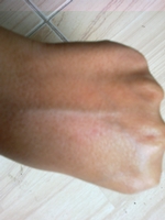 คือลุบบนหลังมือ สักพัก ก็จะแห้งสนิท ที่สำคัญเกลี่ยง่ายดีค่ะ ก่อนใช้หน้า ค่อนข้างจะคล้ำ เป็นแห่งๆ อาจเป็นเพราะหน้าผ่านเครื่องสำอางมาบ้าง แต่ก็ต้องเปลี่ยนตลอด