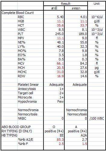รบกวนคุณหมอ หรือผู้มีความรู้ช่วยดูผลเกี่ยวกับธาลัสซีเมียของเราและสามีให้ด้วยค่ะ