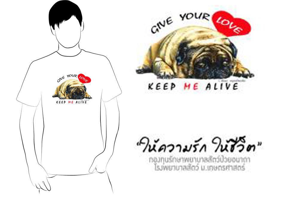 ให้ความรัก ให้ชีวิต กองทุนรักษาพยาบาลสัตว์ป่วยอนาถา โรงพยาบาลสัตว์ มหาวิทยาลัยเกษตรศาสตร์ โีครงการการกุศลดีดีช่วยเหลือสัตว์ป่วยอนาถา การให้ คำสั้น ๆ ที่มีความหมาย คำสั้น ๆ ที่ช่วยส่งต่อจิตใจและมิตรภาพที่ดีงามส่งหากัน ทั้งกับผู้ให้และผู้รับ วันนี้เรามาให้ชีวิตเพื่อนร่วมโลกใบเดียวกับเรา กับโครงการ Give Yourt Love กันนะครับ เหมี้ยว ๆ ๆ ๆ หาซื้อได้ที่ รพส สัตว์มหาวิทยาลัยเกษตรศาสตร์นะครับ เสื้อเริ่มขายวันที่ 1 กพ ในงานเกษตรแฟร์ พอจบงานเกษตรแฟร์ สามารถไปซื้อได้ที่ รพส มหาวิทยาลัยเกษตรศาสตร์ต่อได้เลยครับ