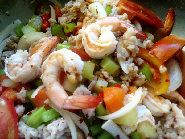 มือใหม่มาอีกแล้วครับ วันนี้ลองทำยำก้านคะน้ากุ้งสดและต้มยำกุ้งครับ