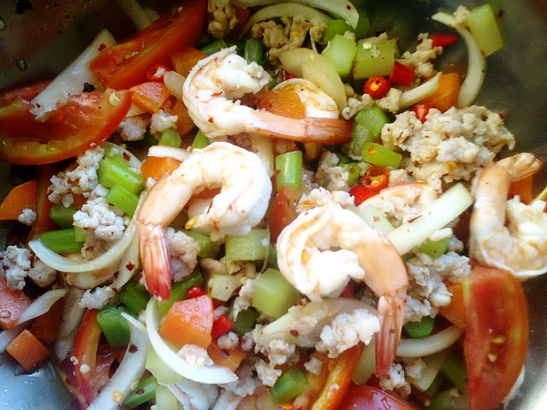 ยำก้านคะน้ากุ้งสด ทำไมแต่ละร้านลวกกุ้งมาก่อน??
