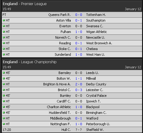 สรุปผลครึ่งแรกพรีเมียร์ และแชมเปียนชิพ