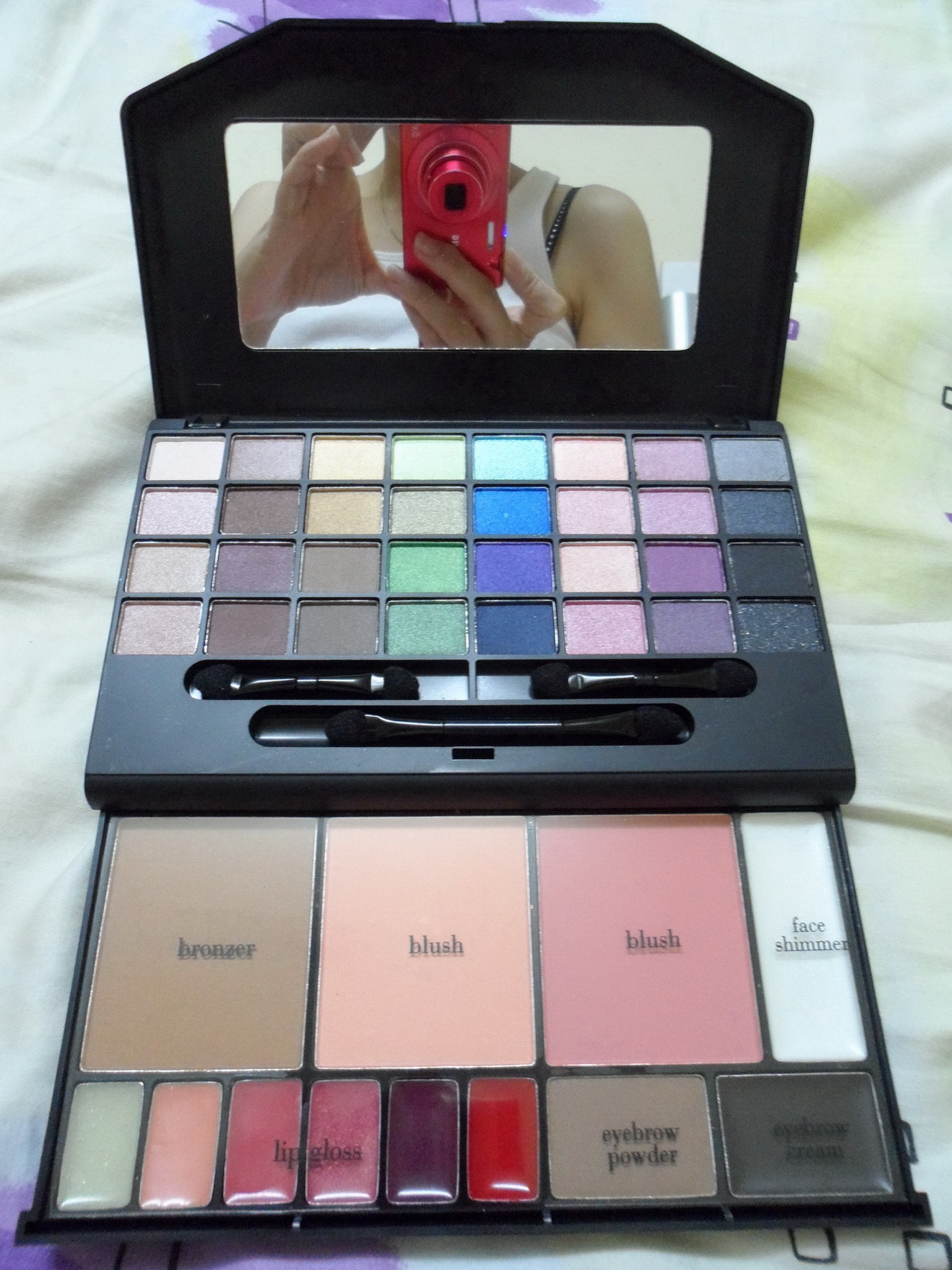 Studio Makeup Clutch Palette เซ็ทแต่งหน้าที่ครบครัน จาก E.L.F. ทั้งแก้ม ปาก ตา โดยพาเลทแบ่งเป็น 2 ชั้น ด้านบนมีอายแชว์โดว์ 32 สี ทั้งสีโทนร้อนและเย็น สามารถนำมาแต่งได้ครบทุกลุคเลยทีเดียว ด้านล่างประกอบไปด้วยบลัชปัดแก้ม บรอนเซอร์ ชิมเมอร์ ลิปกลอส และทาคิ้วทั้งแบบฝุ่นและแบบครีม ในเซตประกอบด้วย - อายแชว์โดว์ 32 สี - บลัชปัดแก้ม 2 สี - บรอนเซอร์ 1 สี - ชิมเมอร์ 1 สี - ลิปกลอส 6 สี - ทาคิ้วแบบฝุ่น 1 สี - ทาคิ้วแบบครีม 1 สี - แปรงฟองน้ำใช้ทาตา จำนวน 3 ชิ้น