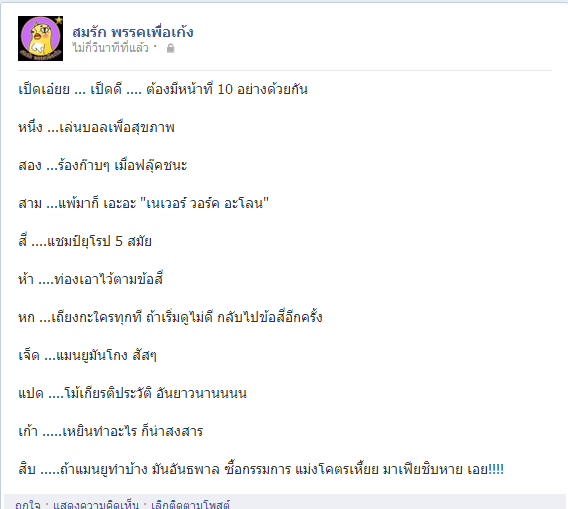 เราไม่เคยเห็นเพจไหนที่ยืดอกแมนๆรับความผิดโดยการนำข้อความอย่างเป็นทางการมากๆ(สุภาพสุดๆ) ทั้งๆที่ปกติแล้ว เพจสมรัก หยาบ ต่ำ ด่าทุกสิ่งทุกอย่างบนโลกใบนี้ (แต่ไอ้คำด่าๆที่เขียนออกมานั้น มันก็เหมือนภาษาพูด