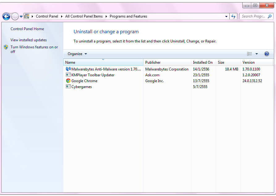 แถมเข้าไปอีกทีโปรแกรมในคอนโทรลแพเนลหายเกลี้ยง มีรูปประกอบค่ะ