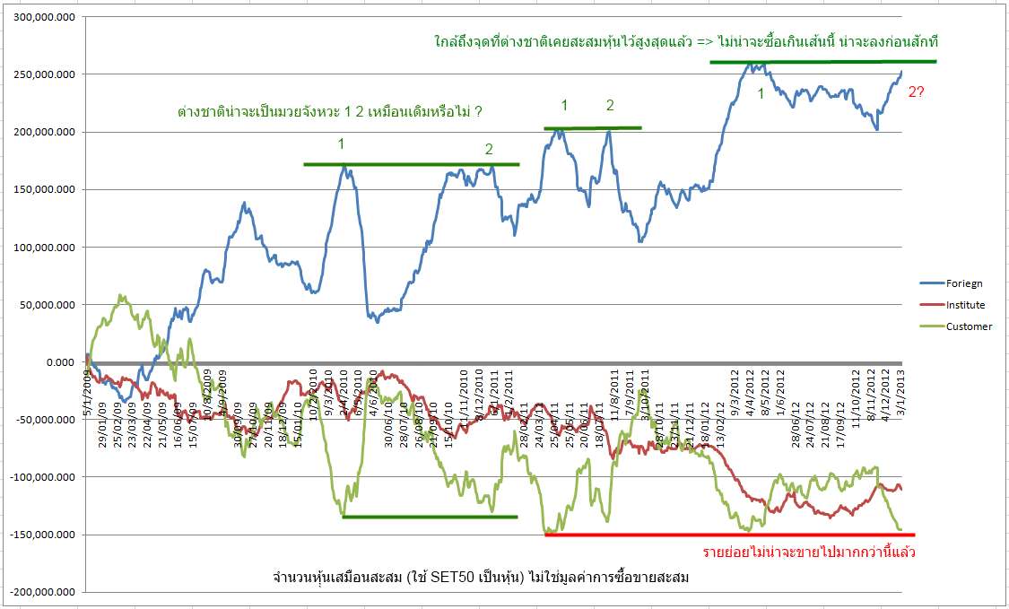 ต่างชาติไม่น่าจะขายหุ้นตอนที่รายย่อยไม่มีแรงซื้อ ตรงนี้ สำหรับผมคิดว่า น่าขายที่สุด