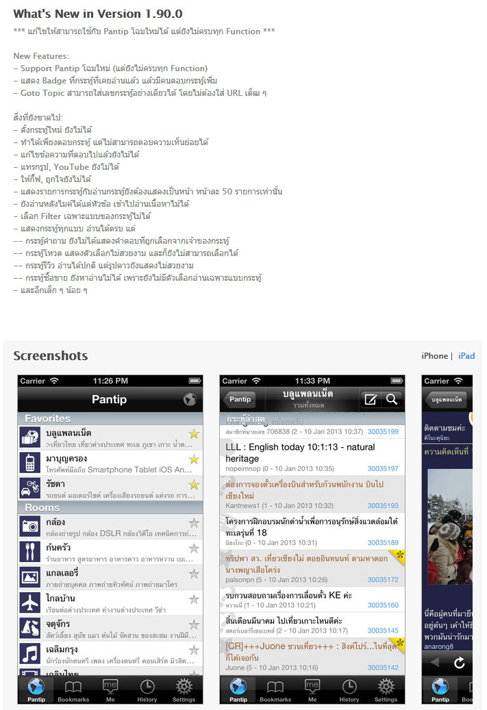 IOS App Pantip Me อัปเดทใช้งานได้บางส่วนแล้วครับ