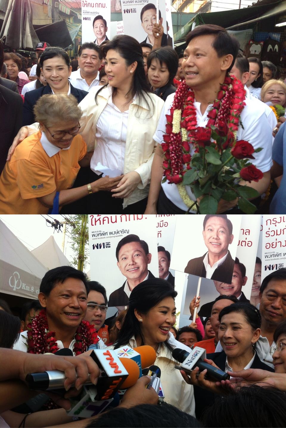 ทั้งนี้นายกฯ และพล.ต.อ.พงศพัศ ได้ให้สัมภาษณ์ตอกย้ำขอโอกาสจากคนกทม.ให้พรรคเพื่อไทยได้มีโอกาสทำงานให้กับกทม. และขอย้ำถึงสโลแกนทำงานไร้รอยต่อ ขณะที่พล.ต.อ.พงศพัศ ได้กล่าวยืนยันว่าจะไม่ทำให้พรรคเพื่อไทยและคนกทม.ผิดหวัง หลังจากนี้นายกฯได้เดินทางต่อไปยังหอประชุมคุรุสภาเพื่อวันครูประจำปี 2556