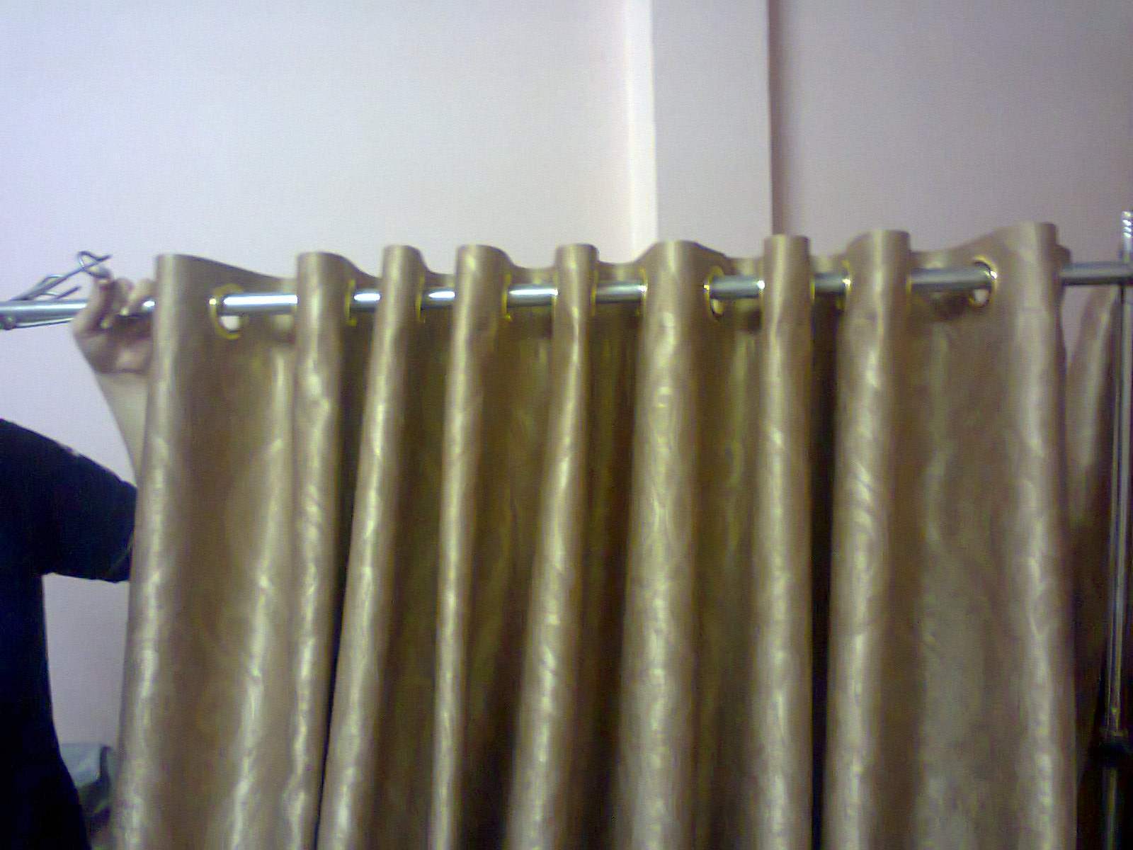 แบบว่าเห่อนะค่ะ ม่านสำหรับประตูหน้าบ้านพึ่งเสร็จเมื่อคืนยังไม่แขวนค่ะ ไม่คิดว่าตัวเองจะทำได้ แต่ด้วยให้เขามาประเมินราคาแพงไปนิด พวกกับตังค์เหลือจากการกู้บ้านเหลือไม่เท่าไหร่เลย เอานะทำเองน่าจะได้ เลยศึกษาในห้องชายคานี้แหละค่ะ ไปเจอกระทู้ของคุณกระแต สอนวิธีการทำได้ละเอียดมาก เลยจัดการไปซื้อผ้ากับอุปกรณ์ทั้งหมดที่ พาหุรัด เลยได้มาเป็นม่านแบบนี้ค่ะ ขออภัยอุปกรณ์ในการแขวนไม่ใช่ของจริงนะค่ะ อิอิใช้ไม้ถูกพื้นลองแขวนดู