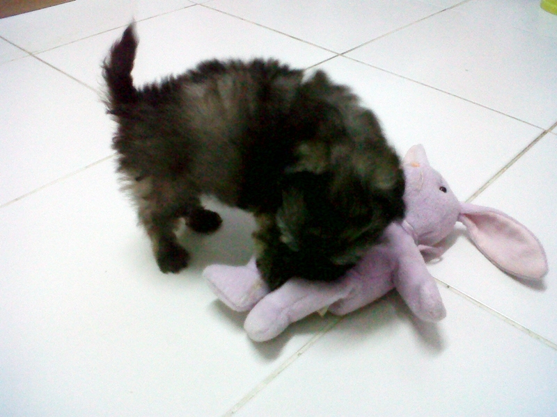 หลังเข้านอนปรากฏว่า ตังค์มาร้องกวนทั้งคืนเลย จะเล่นอย่างเดียว จน จขกท.ต้องสละผ้านวม 1 ผืนใหญ่ปูรองที่นอน